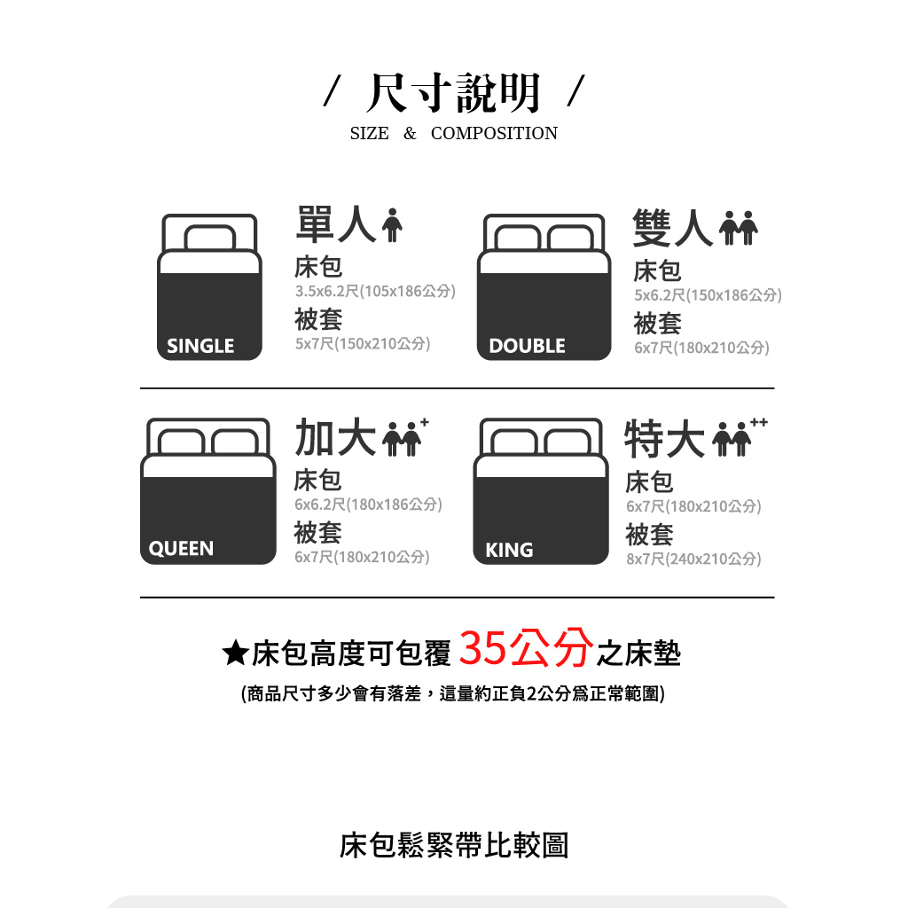 二、寢具屬個人貼身用品,為保護使用潔清度,收到後勿下水先檢查試套尺寸及顏色…等確認,一經使用或洗滌即無法辦理退換貨。